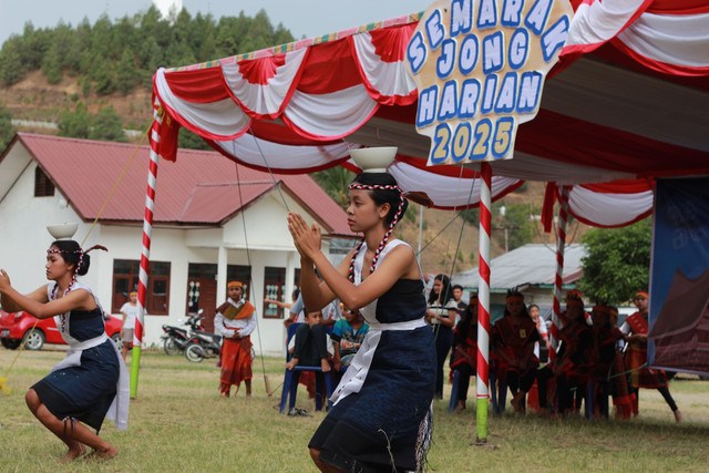 Harian, Sumatera Utara — Udara sore di Harian dipenuhi dengan antusiasme saat festival budaya Semarak Jong mencapai salah satu puncaknya yang paling dinanti: tarian Tor-Tor Pangurosan. Di bawah kanopi merah-putih yang berkibar lembut diterpa angin, barisan wanita muda melangkah maju dengan sinkronisasi sempurna, wajah mereka tenang namun fokus, menggambarkan disiplin dan kehormatan tradisi Batak yang telah berabad-abad.
