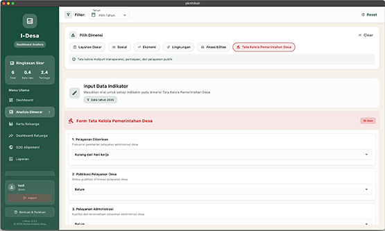 Dokumentasi Apps I-Desa Fachrizal juga menyampaikan bahwa aplikasi ini akan memudahkan koordinasi desa dan kecamatan karena pengelolaan data akan lebih cepat. Selain itu, kehadiran Apps I-Desa Diharapkan mampu meningkatkan akurasi informasi untuk perencanaan pembangunan. Apps I-Desa dilengkapi dengan sistem skoring SDGs terintegrasi untuk mengukur pencapaian desa, misalnya seperti akses ke fasilitas kesehatan, pendidikan, dan air bersih. Seluruh data dari berbagai sektor digabungkan dan dianalisis secara menyeluruh, sehingga disajikan dalam bentuk visualisasi yang memudahkan pemerintah desa. “Saya melihat aplikasi ini akan berguna bagi sektor pemerintahan. Setelah pembuatan aplikasi, kami mengadakan sosialisasi kepada para perangkat untuk memperkenalkan fitur-fitur yang ada, termasuk cara penggunaannya. Masyarakat memberikan respons yang sangat positif terhadap Apps I-Desa,” ujar Fachrizal.