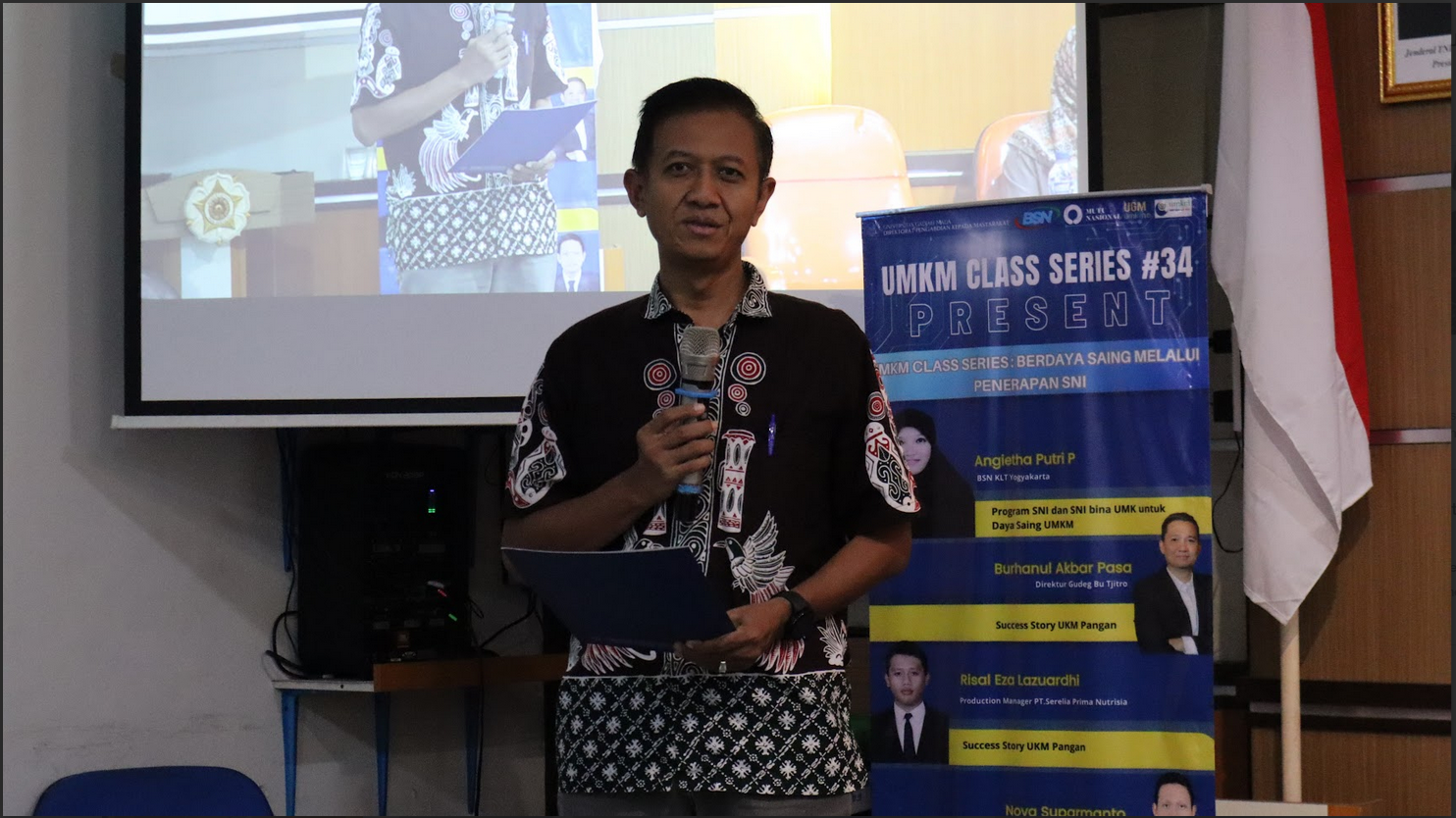 Yogyakarta, 13 November 2025 — Dalam rangka memperingati Hari Standar Dunia dan Bulan Mutu Nasional (BMN) 2025, Badan Standardisasi Nasional (BSN) bersama Direktorat Pengabdian kepada Masyarakat (DPKM) Universitas Gadjah Mada menyelenggarakan UMKM Class Series #34: “Berdaya Saing melalui Penerapan SNI”. Kegiatan edukasi dan pemberdayaan ini digelar di Ruang Sidang 1 DPKM UGM dan melibatkan puluhan pelaku UMKM binaan dari berbagai sektor, baik pangan maupun nonpangan.