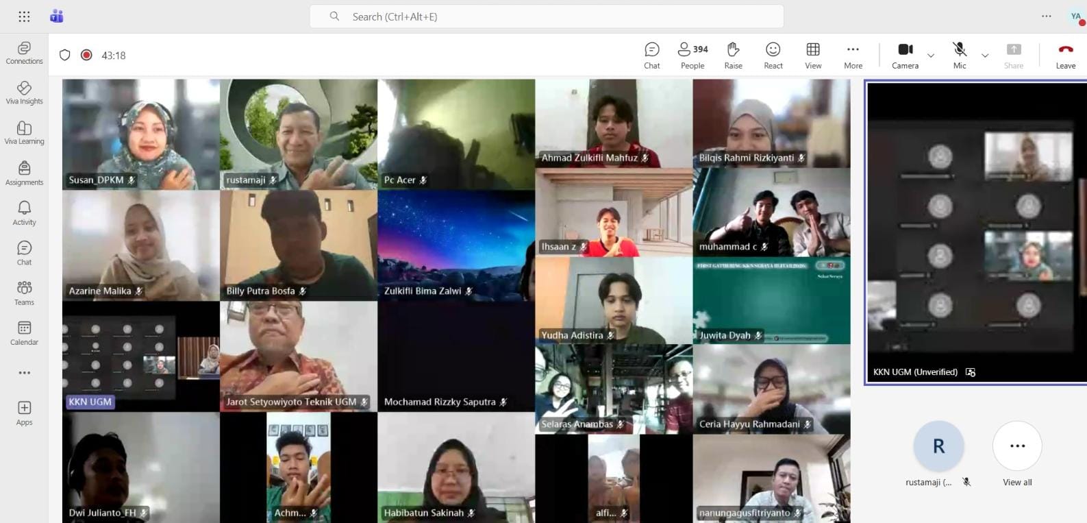 Universitas Gadjah Mada (UGM) melalui Direktorat Pengabdian kepada Masyarakat (DPkM) mengadakan kegiatan sosialisasi untuk Kuliah Kerja Nyata–Pembelajaran Pemberdayaan Masyarakat (KKN-PPM) 2026 secara daring melalui Microsoft Teams (13/1). Acara ini diikuti oleh ribuan mahasiswa dari berbagai fakultas dan jenjang pendidikan, yang bergabung melalui siaran langsung di kanal YouTube KKN-PPM UGM.